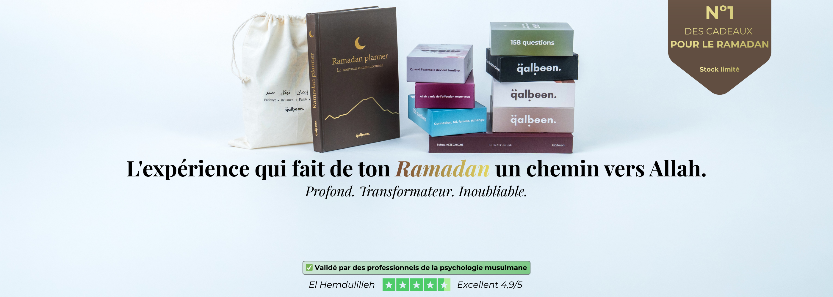Alors que le mois béni du Ramadan est bientôt là, le Ramadan Planner de Qalbeen se présente comme un humble compagnon dans votre voyage de foi et de dévotion. Notre ramadan planner est un rappel quotidien de la profondeur de ce mois béni, vous guidant dans votre préparation et vos actes de dévotion.